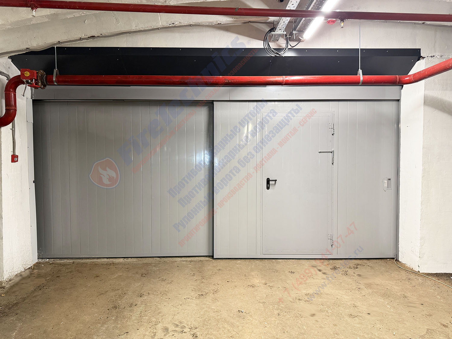 | Продукция с фирменным названием: | Ворота FireTechnics противопожарные (предел огнестойкости EI60), стальные, откатные, с калиткой, автоматические (с электромагнитным фиксатором) модель: двупольные (сдвижные телескопические) FireTechnics-P2 |